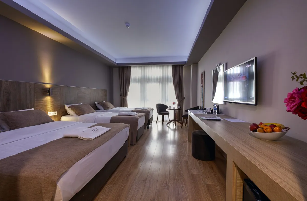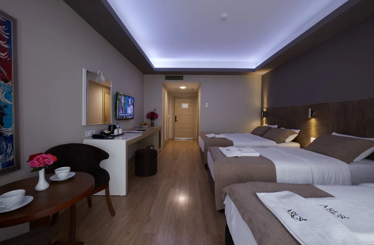 Eskişehir’de iş merkezlerine, turistik mekanlara ve hızlı tren garına kısa bir yürüyüş mesafesinde yer alan Arus Hotel, lüks ve konforlu odalarıyla hem iş gezilerinde hem tatillerde hizmet veriyor. Standart, tekerlekli sandalyeye uygun ve özel banyolu engelli odaları ve 60 m2 King VIP oda seçeneklerine sahip otelin odalarında ise 102 ekran LED TV, çok amaçlı salon, rahat koltuklar, ses yalıtımlı duvarlar, klima, ütü, ütü masası, çelik kasa, minibar ve lüks banyo gibi pek çok özellik var.